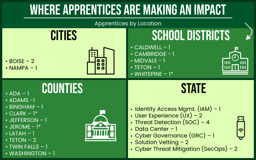 Through Operation Cyber Idaho, the program has already made a significant impact by placing skilled cybersecurity apprentices in counties, cities, school districts, and other critical infrastructure entities. These apprentices are not only gaining hands-on experience but are also helping to enhance the cyber resilience and preparedness of their host organizations.