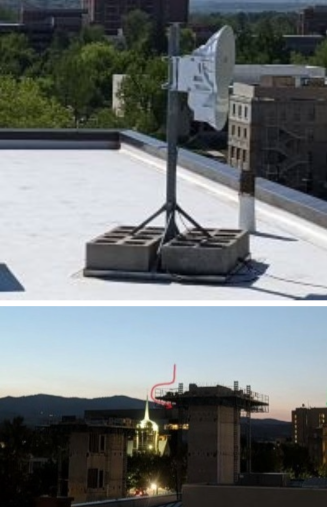 • Hands-On Execution: With no time to spare, Brian and Todd manually hauled heavy radio equipment—secured with 8 cinder blocks and a rubber mat—onto the rooftop using a rope.